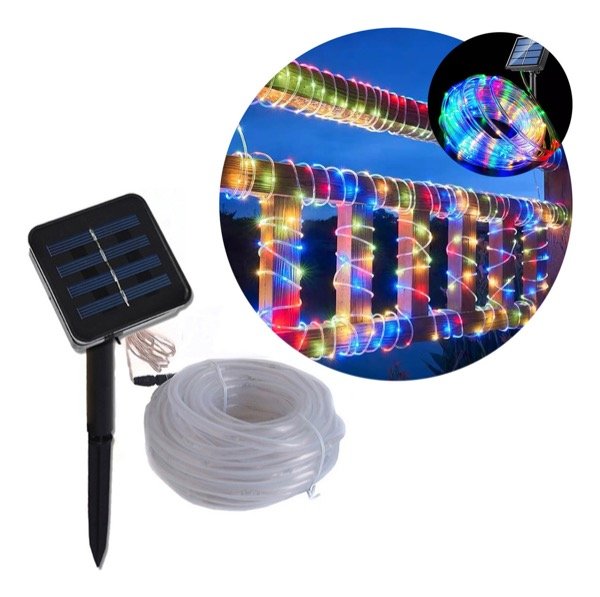 GUIRNALDA LED MANGUERA PANEL SOLAR DECORACION MULTICOLOR TIRA 100 LUCES 10 METROS
